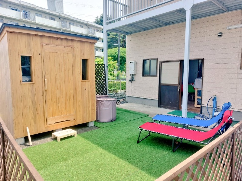 ※個人宅における屋外サウナ小屋も建築物に分類されます。サウナ~水風呂~外気浴スペースの導線にはプライバシー確保などさまざまな配慮が必要になります。詳細はお問い合わせください。