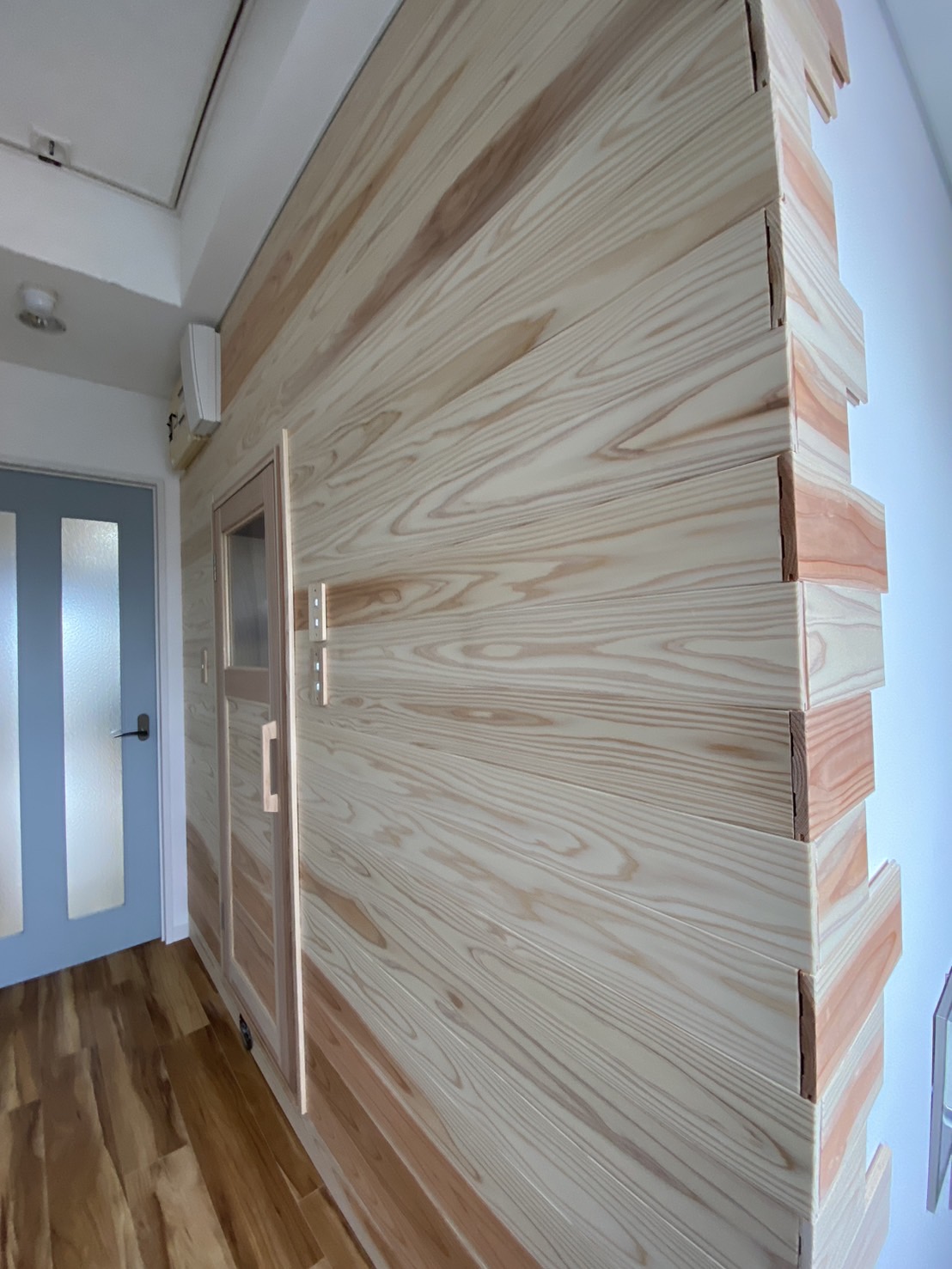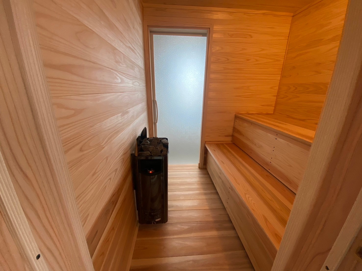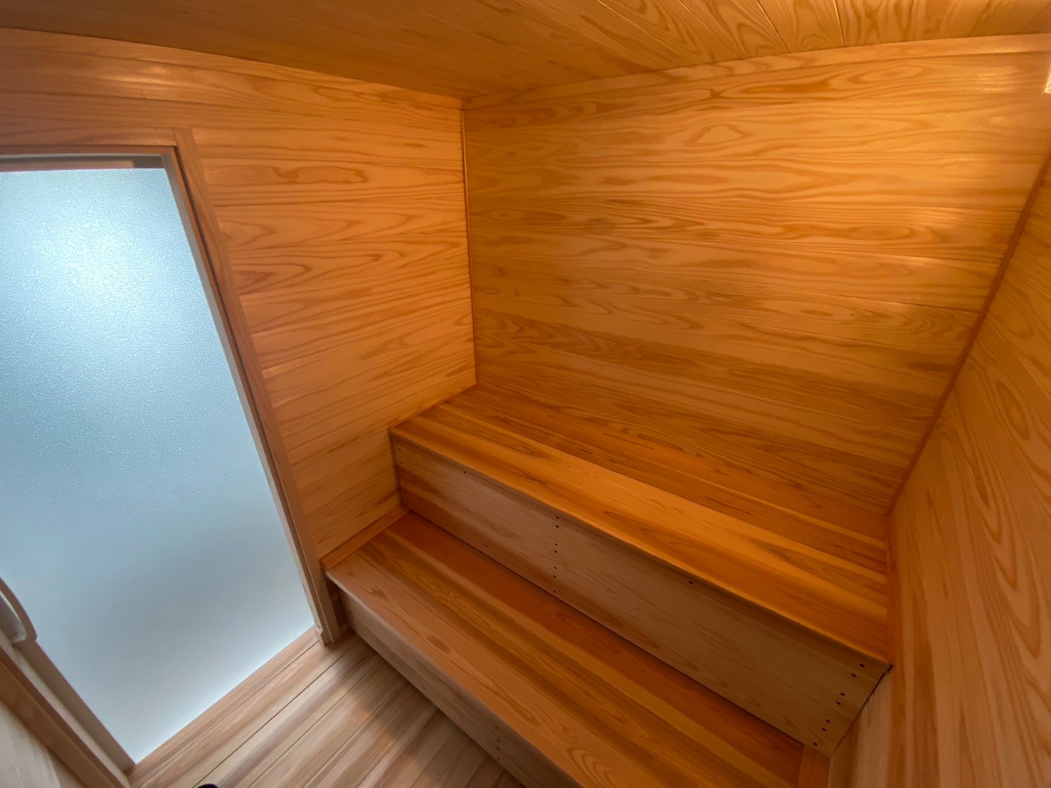 リフォーム会社の事務所内(2F)洗面所スペースにサウナルームを造作しました。